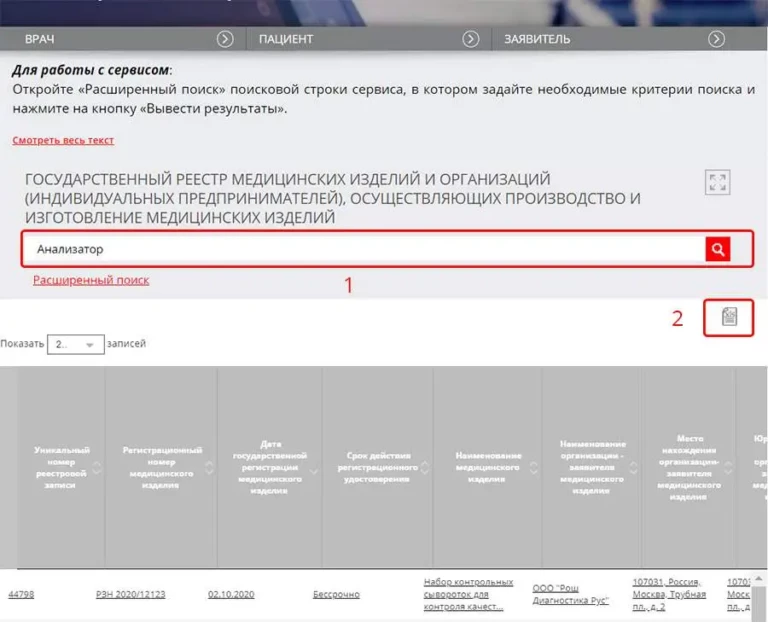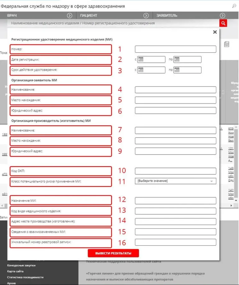 俄罗斯医疗器械注册表高级查询搜索窗口