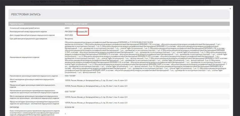 其中包含根据俄罗斯(国家)法规注册的所有医疗器械的详细信息。
