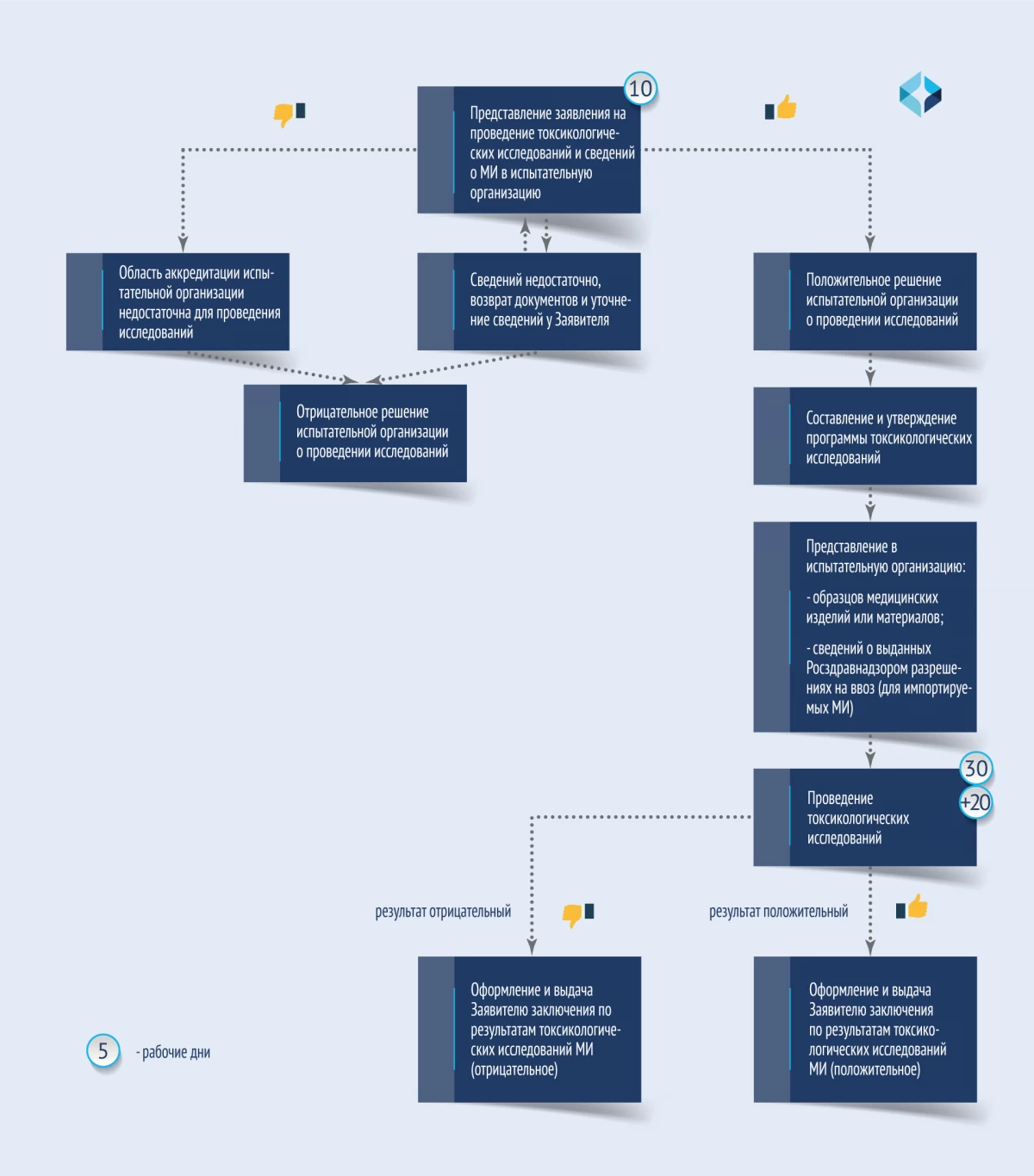 В этом случае допускается по согласованию с Заявителем продлить срок исследований на 20 рабочих дней. Суммарная продолжительность не должна превышать 50 рабочих дней.